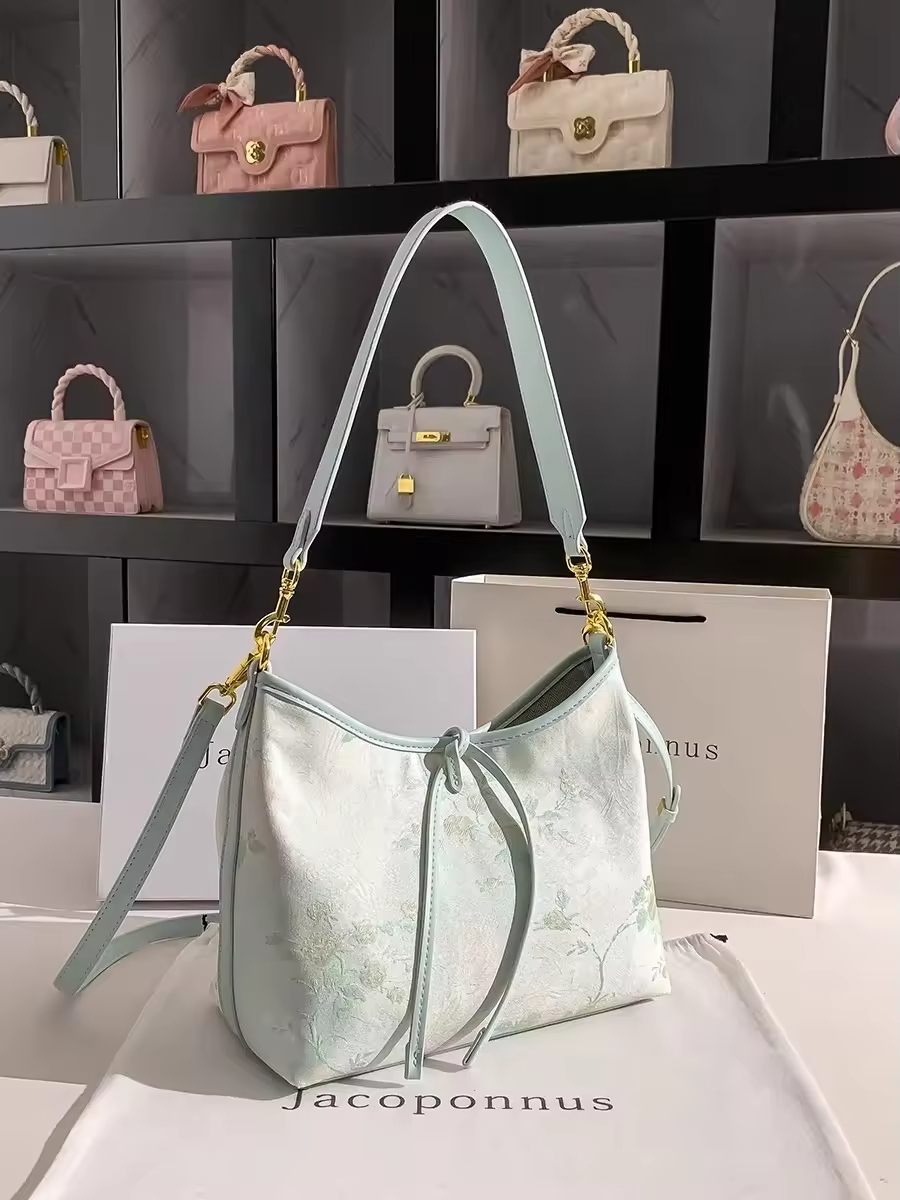 Designer Green Jacquard Tote Bag Stylish Fashion Two Strap Versatile Large Capacity Summer Winter Spring