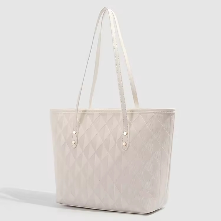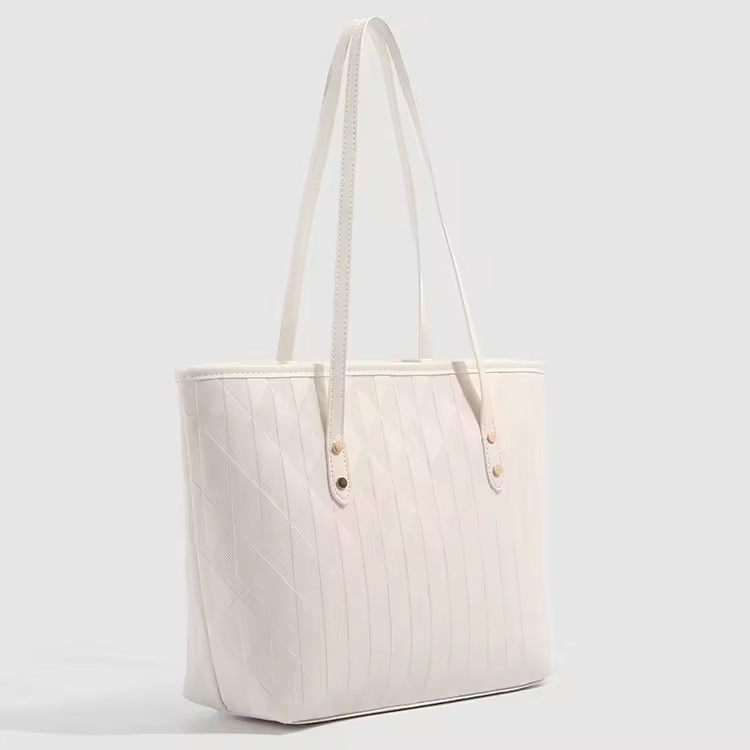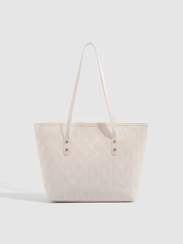 • Women's Large Capacity Zip Tote Bag Simple Fashion Textured Design Versatile PU Material for Commuting Summer Underarm Bag